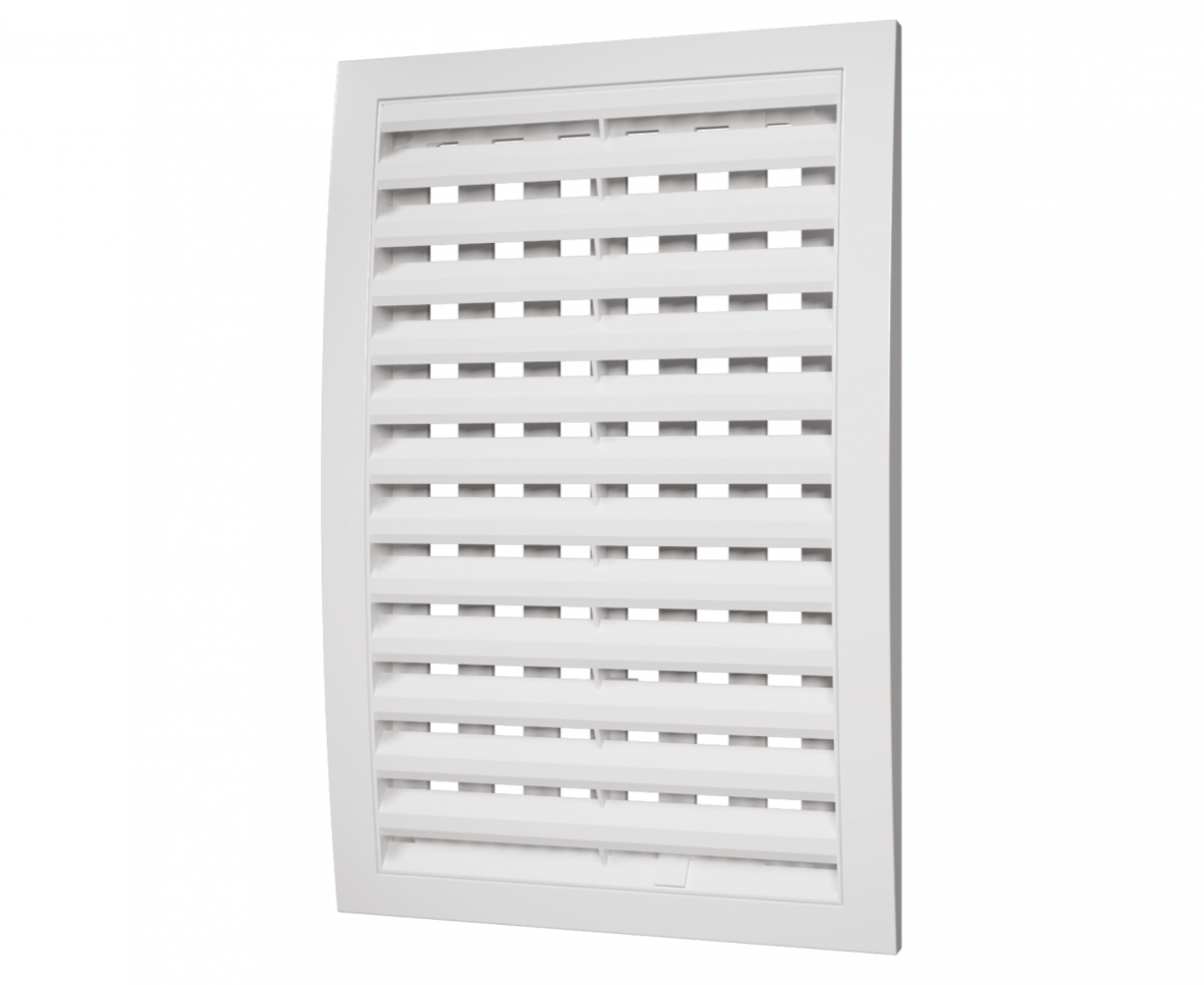 Решетка вентиляционная с наклонными фиксированными жалюзи, или динамичными жалюзи для модификации «РРП», предназначена для естественной вентиляции.